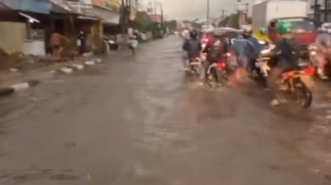 Jakarta, PUBLIKASI – Akibat hujan deras yang mengguyur wilayah Kota Bekasi, Jawa Barat. Beberapa Wilayah tersebut mengalami banjir, Selasa (5/4).