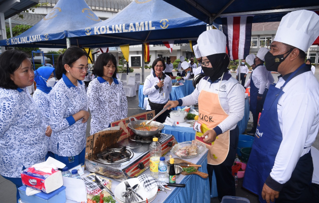 Jakarta, PUBLIKASI – Keseruan kembali terjadi di lapangan apel Mulyono Silam, Mako Kolinlamil, Tanjung Priok, Jakarta Utara. Hari ini, Selasa (7/6) digelar lomba memasak antar satuan kerja jajaran Komando Lintas Laut Militer dan perwakilan anggota Jalasenastri Kolinlamil dalam rangka peringatan hari ulang tahun ke-61 Kolinlamil tahun 2022. Tidak hanya PNS wanita atau prajurit Kowal saja yang terlibat, prajurit pria-pun tidak mau ketinggalan. Mereka juga tampak bersemangat mengikuti lomba memasak dengan bahan dasar ikan laut. Sebagai juri lomba adalah Chef Dwi Aris Cahyanto yang merupakan salah satu chef di Hotel Mulia Senayan, Jakarta.