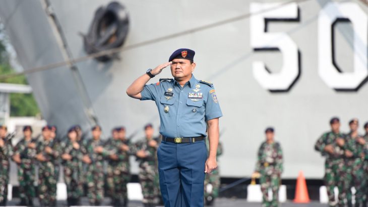 Jakarta, PUBLIKASI — Dalam rangka memperkuat semangat nasionalisme dan meningkatkan rasa cinta tanah air dan bangsa bangsa, prajurit dan PNS jajaran Komando Lintas Laut Militer melaksanakan upacara bendera merah putih yang berlangsung di lapangan Moeljono Silam, Tanjung Priok, Jakarta Utara, Senin (26/6). Pada kesempatan tersebut Asisten Intelijen Panglima Kolinlamil Kolonel Laut (T) Ariyadi bertindak sebagai Inspektur Upacara.