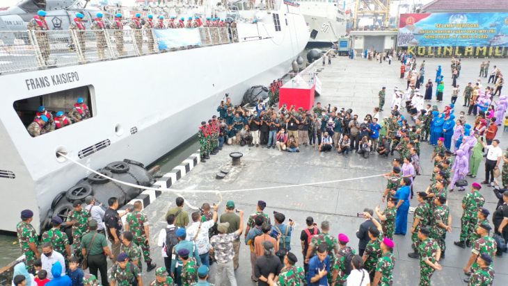Jakarta, PUBLIKASI – Dari Dermaga Mako Kolinlamil, Tanjung Priok, Jakarta Utara, KRI Frans Kaisepo-368 bertolak menuju Lebanon dengan mengemban misi perdamaian dunia dalam Satuan Tugas Maritime Task Force Kontingen Garuda XXVIII/UNIFIL. Acara pelepasan KRI FKO-368 dipimpin langsung Panglima TNI Jenderal TNI Andika Perkasa dan didampingi oleh Kepala Staf Angkatan Laut Laksamana TNI Yudo Margono dan sejumlah pejabat TNI lainnya, Kamis (01/12). KRI Frans Kaisiepo-368 yang dikomandani Letkol Laut (P) John David Nalasakti Sondakh diawaki oleh 119 prajurit yang terdiri atas 103 ABK, 9 crew helly dan 7 personel pendukung nantinya akan bertugas sebagai Satgas MTF selama kurang lebih satu tahun.