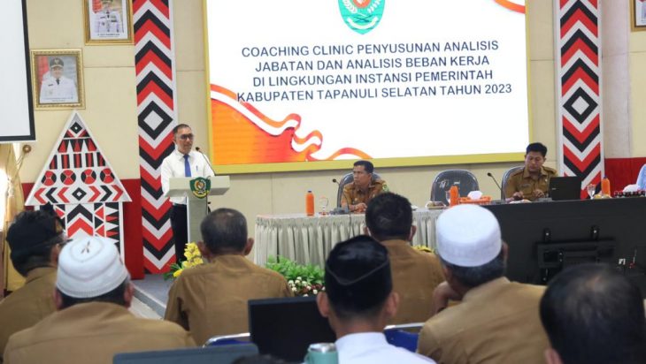 Hal itu disampaikan Bupati melalui Sekda saat membuka coaching clinic penyusunan Analisis Jabatan (Anjab) dan Analisis Beban Kerja (ABK) di lingkungan Pemerintah Kabupaten Tapanuli Selatan tahun 2023 di Aula Sarasi, Lantai III, Kantor Bupati Tapsel, Sipirok, Selasa (12/9).
