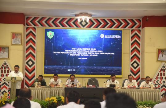 Tapanuli Selatan, PUBLIKASI — Bupati Tapanuli Selatan (Tapsel) Dolly Pasaribu membuka secara resmi High Level Meeting (HLM) Tim Pengendalian Inflasi Daerah (TPID) dan Tim Percepatan dan Perluasan Digitalisasi Daerah (TP2DD) Kabupaten Tapanuli Selatan di Aula Sarasi, Lantai III, Kantor Bupati Tapsel, Jalan Prof. Lafran Pane, Sipirok, Rabu (24/4).