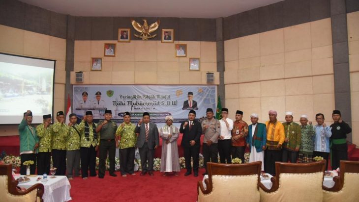 “Berdasarkan nasehat ulama itulah, mari kita bergembira atas lahir dan diutusnya Nabi Muhammad SAW oleh Allah SWT, untuk mengangkat derajat umat Islam serta mengajari kita mana yang baik dan mana yang buruk agar kita selamat dunia dan akhirat,” ajak Bupati.