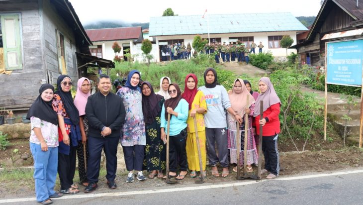 Tapsel, PUBLIKASI – Bupati Tapanuli Selatan (Tapsel) Dolly Pasaribu dan Ketua Tim Penggerak (TP) Pemberdayaan Kesejahteraan Keluarga (PKK) Ny. Rosalina Dolly Pasaribu membaur bersama masyarakat melakukan gotong royong di Adian Pardomuan, Pasar Sipirok, Kecamatan setempat pada Jumat (22/9).