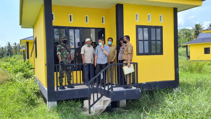 Rohil, PUBLIKASI – Bupati dan Wakil Bupati Rokan Hilir (Rohil) Afrizal Sintong dan H Sulaiman melakukan peninjauan 15 unit bangunan Resetlemen yang berada di Jalan SMA 2, Kelurahan Bagan Hulu, Kecamatan Bangko, Senin (21/2/2022).