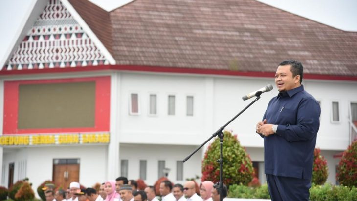 Tapsel, PUBLIKASI – Bupati Tapanuli Selatan (Tapsel) Dolly Pasaribu memimpin apel pagi gabungan di lapangan parade, Komplek Perkantoran Pemerintahan Tapanuli Selatan, Rabu (26/7).