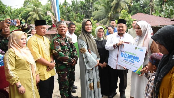 Kemudian Bupati Dolly juga menyerahkan Mushaf Al-Qur’an yang diperuntukkan untuk Masjid Nurul Mukminin di desa setempat, Pesantren Tahfiz Al Romly Desa Bandar Hapinis, dan Ponpes Baburrahman Desa Terapung Raya. (Sakina Ramadhani/Hakim)