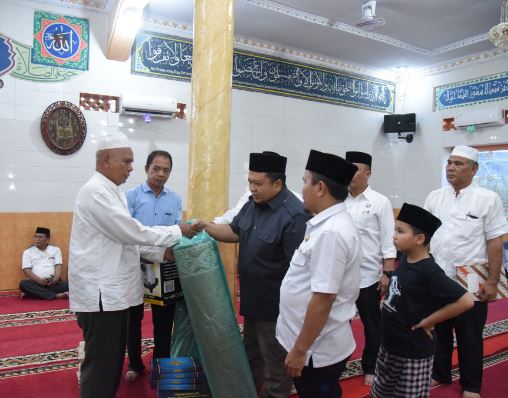 Dikesempatan itu, Bupati menyerahkan 10 cetak Al-Qur’an, 3 gulung ambal, 1 unit, vacum cleaner (pembersih sajadah) kepada pengurus BKM Masjid Istiqlal, kemudian, kain sarung untuk para marbot masjid, dan pembagian zakat Baznas kepada 10 orang penerima.