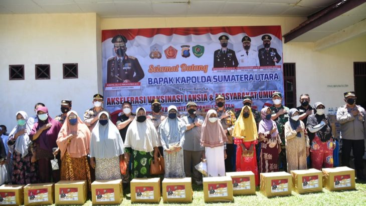 Kemudian Kapoldasu menyapa dengan ramah satu persatu para lanjut usia dan masyarakat umum yang akan mengikuti vaksinasi begitu juga dengan tim vaksinator untuk memastikan apakah pemberian vaksin berjalan baik dan benar.
