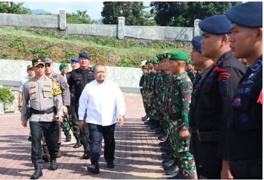 Tapanuli Selatan, PUBLIKASI — Bupati Tapanuli Selatan (Tapsel) Dolly Pasaribu menghadiri apel gelar pasukan Operasi Kepolisian Terpusat Ketupat Toba 2024 dalam pengamanan Idul Fitri 1455 Hijriah tahun 2024 di lapangan Mapolres Tapsel, Sipirok, Rabu (3/4).