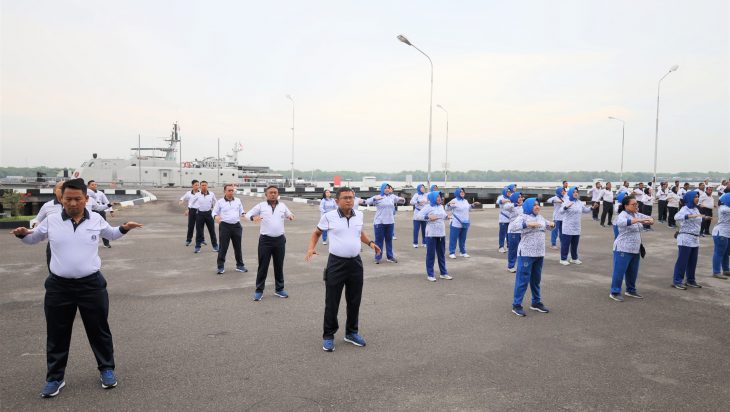 Belawan, PUBLIKASI – Komandan Pangkalan Utama TNI Angkatan Laut I (Danlantamal I) Laksamana Pertama TNI Dores Afrianto Ardi, S.E., M.Si., M.Han., CHRMP., didampingi Ketua Korcab I DJA I Ny. Santhi Dores Afrianto, beserta Keluarga Besar Lantamal I dan Yonmarhanlan I melaksanakan olahraga bersama, bertempat di Lapangan Apel Mako Lantamal I, Jalan Serma Hanafiah No. 01, Belawan, Sumataera Utara, Selasa (23/1/2024).