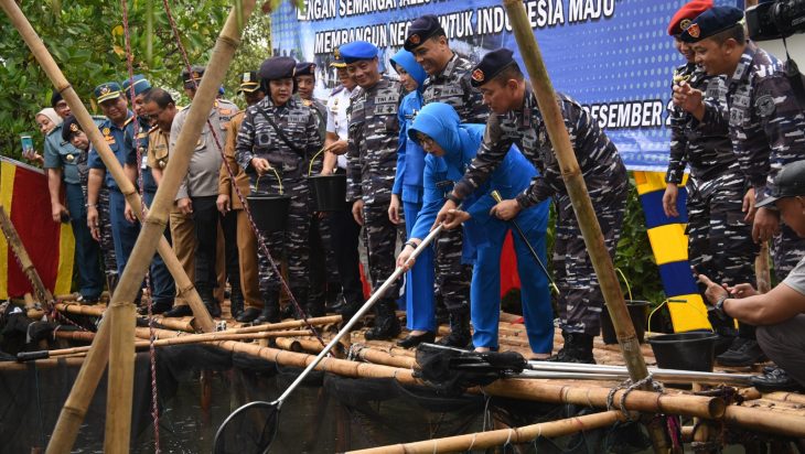 Kegiatan yang mengangkat tema “Kampung Bahari Nusantara TNI AL Siap Mendukung Tranformasi Ekonomi Yang Inklusif dan Berkelanjutan Menuju Masyarakat Maritim yang Sejahtera” bertempat di Desa Segara Jaya dihadiri langsung Panglima Kolinlamil Laksma TNI Hudiarto Krisno Utomo, PSC(J)., M.A., M.M.S., CHRMP didampingi Ketua Gabungan Jalasenastri Kolinlamil Ny. Irna Krisno Utomo, Kepala Staf Komando Lintas laut Militer Laksma TNI Mochammad Riza, para pejabat Utama Kolinlamil, Forkopimda Kabupaten Bekasi, para Kasatker Kolinlamil serta masyarakat nelayan di kawasan tersebut.