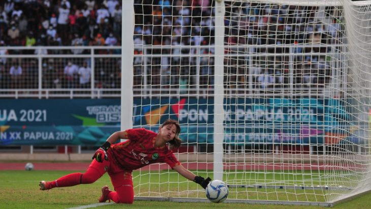 Merauke, PUBLIKASI – Laga final memperebutkan medali emas pada PON XX Papua mempertemukan Galanita Papua vs Jawa Barat bertempat di stadion Katapal Merauke, menampilkan permainan agresif dengan tempo tinggi, sejak peluit panjang babak pertama di bunyikan jabar mengambil inisiatif menekan anak asuh dari coach Dani Atmodjo, anak-anak asuh Ronny Remon bermain cepat hingga tercatat Jabar nyaris bebarapa kali membuat gawang galanita Papua yang di kawal Agustina Kwano ini kebebobolan, di samping itu galanita Papua yang mengandalkan serangan balik nyaris pula membobol gawal Jabar yang di kawal Diyana Herliana.