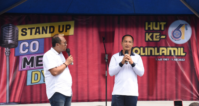 Jakarta, PUBLIKASI – Rangkaian acara peringatan hari ulang tahun ke-61 Komando Lintas Laut Militer kembali digelar. Kali ini dilaksanakan lomba stand-up comedy dengan peserta perwakilan prajurit atau PNS di satuan kerja jajaran Kolinlamil, tidak ketinggalan perwakilan anggota Jalasenastri turut juga ambil bagian. Keceriaan penuh keakraban dan gelak tawa keluarga besar Kolinlamil tampak jelas di awning Selatan Lapangan Mulyono Silam, Mako Kolinlamil, Tanjung Priok, Jakarta Utara pagi hari ini, Selasa (17/5) ketika satu persatu peserta lomba stand-up comedy menampilkan kelucuannya atau bahkan tidak lucu namun tetap mengundang gelak tawa.