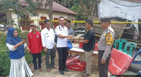 “Hari ini kami diperintahkan turun ke lokasi musibah kebakaran rumah. kami bawa segala keperluan rumah tangga sesuai aturan dan standar pemerintah, kemudian atas koordinasi dengan Disdukcapil sekaligus kami serahkan Kartu Keluarga (KK). Dan disini kami sampaikan titip salam Pak Bupati, beliau turut berdukacita atas musibah ini, semoga dapat membantu kesulitan keluarga musibah ini,”sebut Dani.