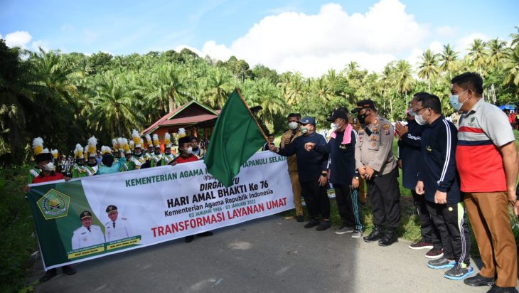 Tapanuli Selatan, PUBLIKASI – Bupati Tapanuli Selatan (Tapsel), H Dolly Pasaribu, SPt, MM, melepas dan mengikuti gerak jalan santai kerukunan yang digelar oleh Kementerian Agama (Kemenag) RI, Selasa (4/12/2022) di Lapangan Sarasi II, Kelurahan Bintuju, Kecamatan Angkola Muaratais.
