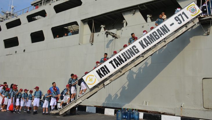 Sebelum naik ke KRI Tanjung Kambani-971, siswa-siswi Sekolah Dasar yang berkunjung mendapatkan penjelasan tentang tata cara keluar masuk KRI serta tradisi dan kehidupan Prajurit TNI AL selama di atas kapal perang. Selanjutnya mereka diajak berkeliling untuk mengenal lebih dalam fasilitas dan teknologi yanga ada di kapal perang KRI Tanjung Kambani-971. Dengan penuh perhatian dan sesekali bertanya kepada prajurit KRI yang bertugas memandu, para siswa mendapatkan pengalaman perdananya meng-explore KRI yang selama ini mempunyai tugas mendukung angkutan laut militer pergeseran prajurit berikut perlengkapannya ke seluruh wilayah Indonesia.