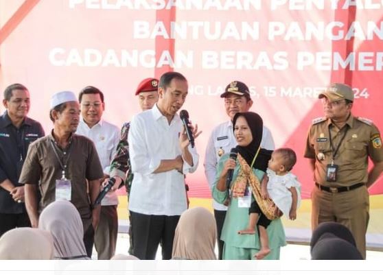 Jokowi berpesan agar masyarakat jangan lagi risau karena Pemerintah sudah menyalurkan beras 10 kg dari bulan Januari sampai bulan Juni mendatang. tutup Jokowi. Soleh
