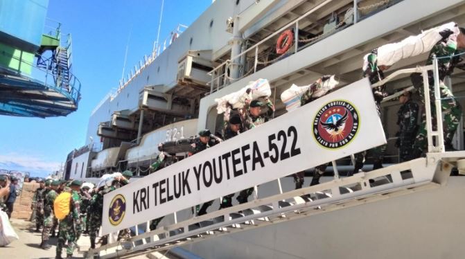 Gorontalo, PUBLIKASI — KRI Teluk Youtefa-522 (KRI TYO-522) yang sebelumnya telah sukses melaksanakan Operasi Trisula Jaya-24 dalam rangka angkutan laut dukungan pergeseran pasukan dan pergeseran material pelaku Latihan Pratugas Yonif 715 R/III/MDK dan Yonif 756/XVII/CEN. Kali ini KRI Teluk Youtefa-522 kembali melaksanakan dukungan angkutan laut pergeseran personel dan material pelaku Latihan Pratugas Yonif 715 R/III/MDK, pada hari Jumat (10/5) bertempat di Dermaga IV Pelindo Gorontalo.