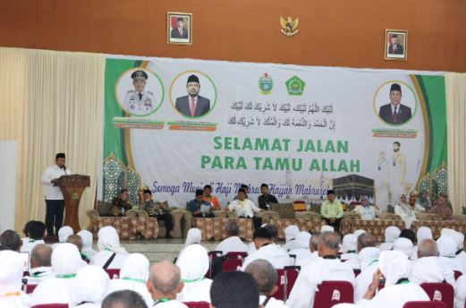 “Kami pemerintah daerah beserta seluruh elemen masyarakat, selalu senantiasa mendoakan, mudah-mudahan bapak/ibu diberikan kelancaran, kesehatan dan kemudahan dalam melaksanakan aktivitas ibadahnya,” ungkapnya.