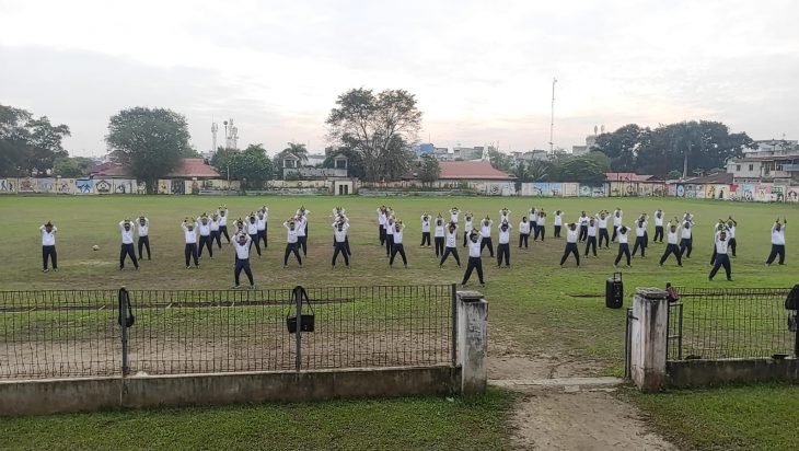 Pagi yang cerah dan segar serta sinar matahari yang hangat di Stadion Asahan Sakti Kota Tanjungbalai. Prajurit Lanal Tanjung Balai Asahan melaksanakan olahraga Senam SKJ 88 dilanjutkan bermain sepak bola untuk menjaga kondisi fisik tetap prima.