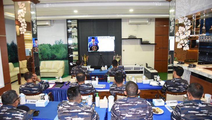 Jakarta, PUBLIKASI – Kepala Staf Komando Lintas Laut Militer Laksma TNI Retiono Kunto mengikuti Rapat Pimpinan (Rapim) TNI AL tahun 2022 melalui video conference dari ruang Officer Club, Mako Kolinlamil, Tanjung Priok, Jakarta Utara, Rabu (2/3).