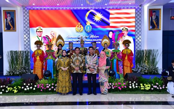 Jakarta, PUBLIKASI — Panglima Kolinlamil Laksda TNI Hudiarto Krisno Utomo, PSC(j) M.A., M.M.S., CHRMP didampingi Ketua Gabungan Jalasenastri Kolinlamil Ny. Irna Krisno Utomo menghadiri Gala Dinner bersama Panglima Tentera Laut Diraja Malaysia (TLDM) Laksamana Tan Sri Abdul Rahman bin Ayob dan istri Puan Sri Dr. Norinah binti Mustapha yang dipimpin langsung oleh Kepala Staf Angkatan Laut (Kasal) Laksamana TNI Dr. Muhammad Ali, S.E., M.M., M.Tr.Opsla didampingi Ketua Umum Jalasenastri Ny. Fera Muhammad Ali dan turut dihadiri Pejabat Utama Mabesal, Para Pangkotama Wilayah Jakarta serta Perwakilan Delegasi Malaysia, pada hari Senin (22/7) petang di Wisma Elang Laut, Menteng, Jakarta Pusat.