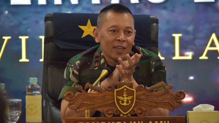 Jakarta, PUBLIKASI — Panglima Komando Lintas Laut Militer Laksda TNI Yayan Sofiyan diantara kesibukannya menyempatkan waktu untuk menyampaikan ‘jam komandan’ kepada Perwira Mako Kolinlamil dan Perwira pengawak KRI yang dilaksanakan di gedung Laut Nusantara, Mako Kolinlamil, Tanjung Priok, Jakarta Utara, Selasa (28/2). Di lingkungan TNI Angkatan Laut, jam komandan atau briefing merupakan salah satu metode yang cukup efektif untuk menyampaikan santiaji dan berbagai informasi tentang situasi terkini serta menindaklanjuti hal-hal yang menjadi penekanan dan instruksi dari Pimpinan.