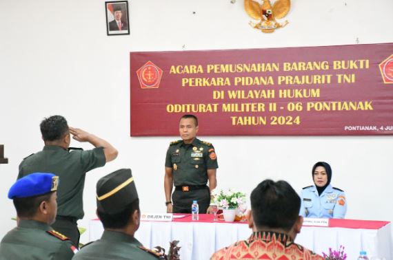 Dalam sambutannya Oditur Jenderal (Orjen) TNI Mayjen TNI Mokhamad Ali Ridho, mengatakan bahwa salah satu barang bukti yang akan dimusnahkan sabu seberat 21.028 (dua puluh satu ribu dua puluh delapan) gram, dimana narkoba adalah salah satu faktor yang memiliki daya rusak luar biasa terhadap generasi muda bangsa ” Indonesia, oleh ”karenanya kegiatan pemusnahan sabu ini juga menunjukkan bukti komitmen TNI ikut berperang terhadap peredaran narkoba di Indonesia lebih khusus di wilayah Kalimantan Barat.