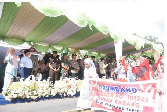 Sementara kedatangan Bupati Dolly Pasaribu bersama Ketua TP PKK Tapsel Ny. Rosalina Dolly Pasaribu disambut dengan sangat meriah oleh seluruh masyarakat Tapsel ketika tiba dilokasi panggung penghormatan.