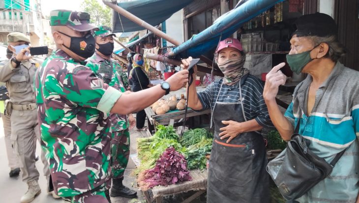 Jakarta, PUBLIKASI – Kelurahan Semper Timur bersama petugas TNI dan Polri menggelar kampanye penggunaan masker di Pasar Jongkok, Rabu (9/2). Kegiatan membangkitkan kesadaran masyarakat untuk menjalankan protokol kesehatan tersebut dilakukan untuk mencegah terjadinya penyebaran COVID-19.