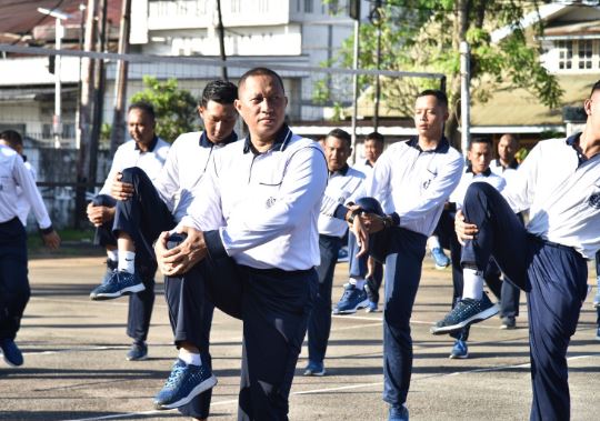 Pontianak,PUBLIKASI — Komandan Pangkalan Utama TNI Angkatan Laut Laksamana Pertama TNI Avianto Rooswirawan, S.E., M.Si., M.Tr.Opsla. didampingi Ketua Korcab XII DJA I Ny. Sari Avianto Rooswirawan melaksanakan olahraga bersama dengan seluruh prajurit, PNS dan Jalasenastri Lantamal XII di Lapangan Upacara Satuan Kapal Patroli (Satrol) Lantamal XII, Jl. Komodor Yos Sudarso. No. 1 Pontianak Kalimantan Barat, Selasa (07/05/2024).
