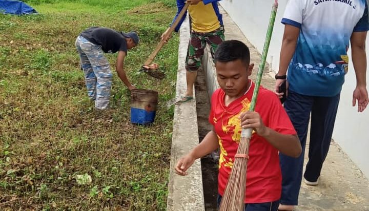 Makassar, PUBLIKASI – Prajurit Satuan Lintas Laut Militer 3 yang bermarkas di Makassar memanfaatkan waktu libur di hari Minggu dengan melaksanakan kurve bersama atau kerja bakti di area Flat Satlinlamil 3 Lanraki, Makassar, Minggu (6/3)