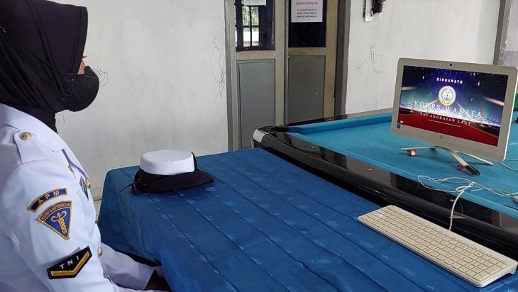 Sabang, PUBLIKASI – Bertempat di Kantor Satkom Lanal Sabang, Jalan Yos Sudarso, Gampong Kuta Ateuh, Kecamatan Sukakarya, Kota Sabang, Prajurit Kowal Lanal Sabang Serda (Apm/W) Zakzatul Iradhah yang sehari-hari bertugas di Balai Pengobatan Lanal Sabang mengikuti vicon HUT Ke-59 Korps Wanita Angkatan Laut Tahun 2022 yang dipusatkan di Markas Besar Angkatan Laut (Mabesal), Cilangkap, Jakarta Timur, Rabu (05/01/2022).
