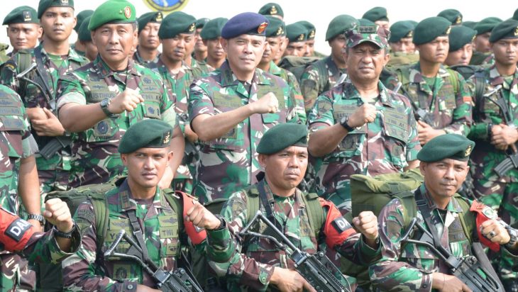 Jakarta, PUBLIKASI — Kapal perang jajaran Komando Lintas Laut Militer KRI Teluk Bintuni-520 sukses mengemban misi dukungan angkutan laut militer pergeseran pasukan beserta materialnya dari Batalyon Infanteri Mekanis 203/ Arya Kamuning yang bermarkas di Kota Tangerang, Banten. Setibanya di Jakarta, Yonif Mekanis 203/ Arya Kamuning yang purna tugas Satuan Tugas Pengamanan Perbatasan (Satgas Pamtas) RI – PNG Mobile selanjutnya melaksanakan upacara penyambutan yang dipimpin oleh Panglima Kodam Jaya/Jayakarta Mayjen TNI Mohamad Hasan yang berlangsung di lapangan Moeljono Silam, Mako Kolinlamil, Tanjung Priok, Jakarta Utara, Rabu (17/5). Hadir dalam upacara penyambutan tersebut mewakili Panglima Kolinlamil Laksda TNI Yayan Sofiyan, Asisten Operasi Pangkolinlamil Kolonel Laut (P) Ronald Rarun beserta sejumlah Perwira Kolinlamil.