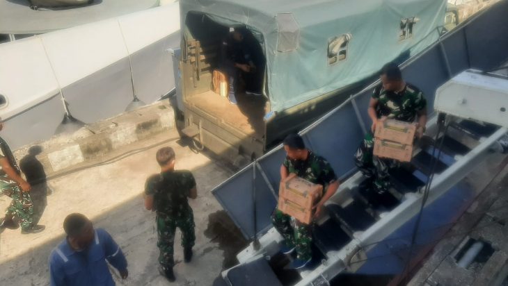 Komandan KRI Teluk Parigi-539 yang ditemui saat mengawasi proses debarkasi material menyampaikan bahwa, material yang diangkut oleh kapalnya berasal dari Surabaya yang nantinya akan didistribusikan sesuai alokasi yang sudah ditentukan untuk masing-masing Satdik. Lebih lanjut Komandan KRI TGI-539 meyampaikan sesaat sebelum kapal tolak dari pangkalan Surabaya, Komandan Satlinlamil 2 Kolonel Laut (P) Muhammad Nizarudin mengecek kesiapan personel dan materiil KRI serta kelengkapan material yang akan digeser ke ketiga Satdik TNI AL.
