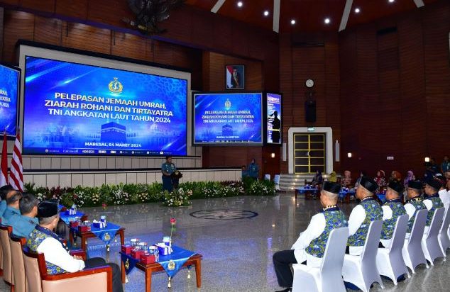 Jakarta, PUBLIKASI — Kepala Staf Kolinlamil LaksmaTNI Mochammad Riza, S.E., M.Tr. Opsla., CRMP dalam hal ini mewakili Panglima Komando Lintas Laut Militer Laksda TNI Hudiarto Krisno Utomo, PSC(j)., M.A., M.M.S., CHRMP menghadiri undangan acara pelepasan ibadah jemaah Umrah, Ziarah Rohani dan Tirtayatra TNI Angkatan Laut Tahun 2024 pada hari Senin (04/03) bertempat di Gedung Auditorium Yos Sudarso Denma Mabesal Cilangkap Jakarta Timur, yang dilepas secara langsung oleh Kepala Staf Angkatan Laut Laksamana TNI Muhammad Ali, S.E., M.M., M.Tr.Opsla serta dihadiri sejumlah Pejabat Utama Mabesal, Para Pimpinan Kotama TNI Angkatan Laut serta para peserta ibadah Umrah, Ziarah Rohani dan Tirtayatra.