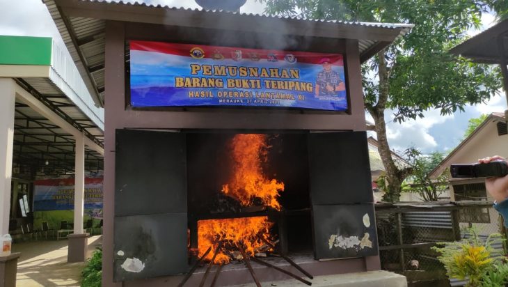Merauke, PUBLIKASI– Lantamal XI laksanakan pemusnahan barang bukti teripang ilegal yang di duga berasal dari PNG sebanyak 100 kg bertempat di balai karantina pertanian Merauke, dalam acara pemusnahan ini turut di saksikan instansi terkait dari Bea Cukai, PSDKP, Dinas Perikanan, Polres Merauke, dan balai karantina Ikan. Rabu, 27/04/22