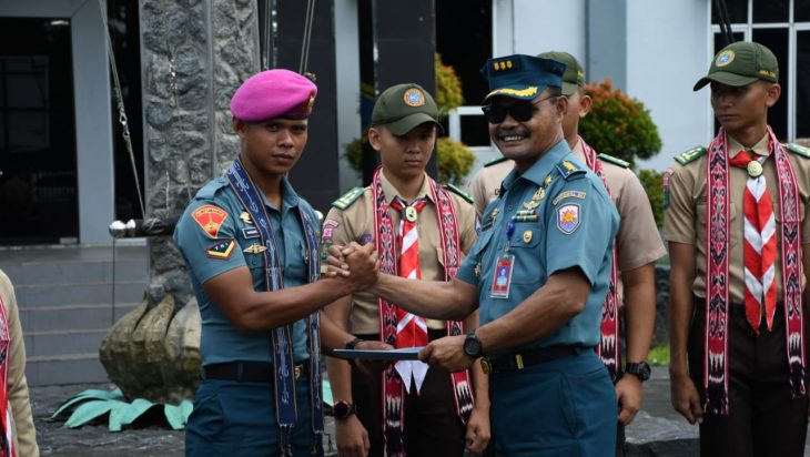 Pontianak, PUBLIKASI – Asisten Potensi Maritim Komandan Pangkalan Utama TNI Angkatan Laut (Aspotmar Danlantamal) XII Kolonel Marinir Ernst Riqumahu, CRMP. melepas Satuan Karya Pramuka (Saka) Bahari SMK Taruna Bumi Khatulistiwa untuk mengikuti Pelayaran Lingkar Nusantara (Pelantara) 11 Sail Teluk Cenderawasih Tahun 2023 di Satuan Kapal Patroli (Satrol) Lantamal XII Jl. Komodor Yos Sudarso No. 1 Pontianak Kalimantan Barat, Rabu (08/11/2023).