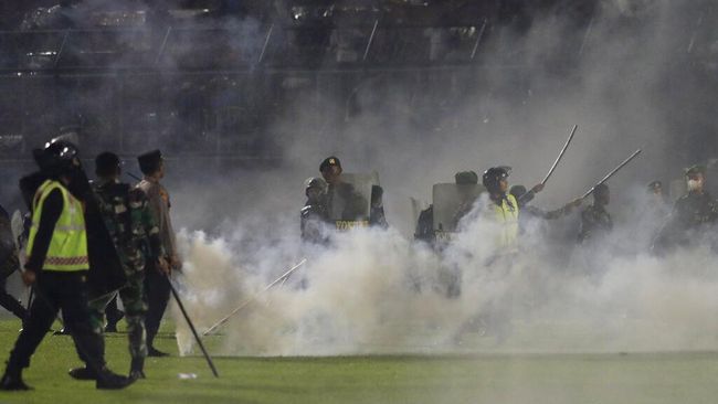 Diketahui, gas air mata tidak boleh digunakan untuk meredam massa di dalam pertandingan sepak bola seperti diatur dalam ketentuan FIFA pada Bab III dan pasal 19 soal Steward di pinggir lapangan.