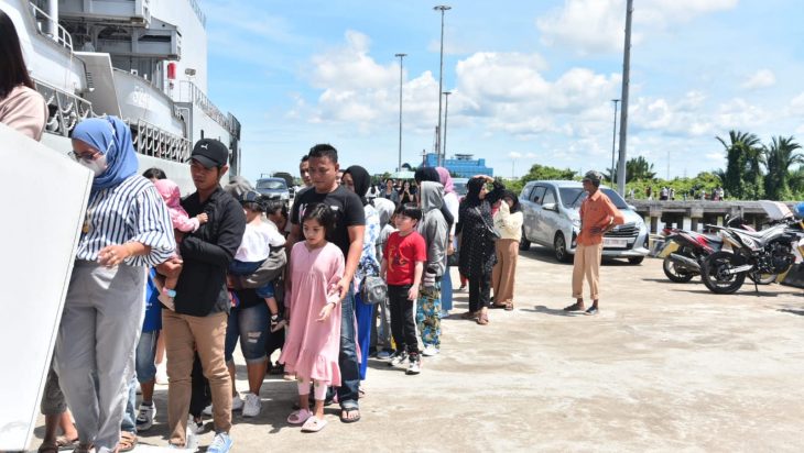 Terlihat bagaimana antusiasme masyarakat berswafoto diatas kapal-kapal yang sedang bersandar di Dermaga Mako Lantamal XII, yaitu KRI Teluk Calang-524, KRI Tjiptadi-381, KRI Kerambit-627 dan KRI Barakuda-633.