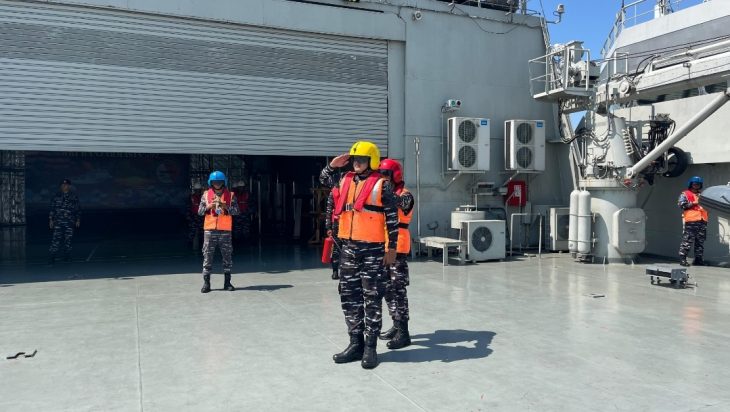 Latihan helly deck ini diikuti oleh seluruh prajurit KRI Banjarmasin-592 dan titik fokus pada Tim Helly Deck Party, baik Perwira, Bintara, dan juga Tamtama. (Andi RR)