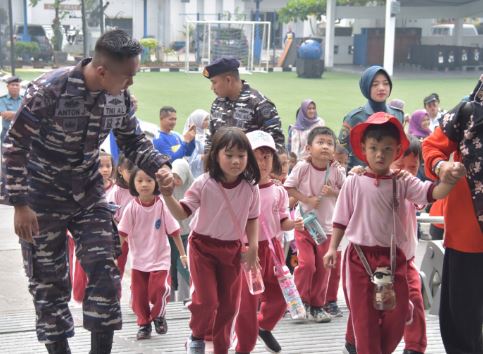 Jakarta, PUBLIKASI –– Dalam rangka melaksanakan publikasi TNI AL, Komando Lintas Laut Militer menerima kunjungan dari sekolah taman kanak-kanak untuk melaksanakan warship tour di kapal perang yang tengah sandar di Dermaga Mako Kolinlamil, Tanjung Priok, Jakarta Utara, Rabu (21/2). Kolinlamil memfasilitasi pelajar dari 5 Taman kanak-kanak yang terdiri dari TK Islam Al Barkah Kelapa Gading, TK Bentara Indonesia IV Sunter, BKB Paud Anggrek Koja, Paud Dorang 01 Kelapa Gading dan Emmerich Preschool Pluit sejumlah 394 siswa untuk berkunjung ke KRI Semarang-594 yang disambut langsung oleh Komandan KRI Semarang-594 Letkol Laut (P) Homa Sugama, S.E., MSC. CHRMP dengan penuh keramahan dan kehangatan.