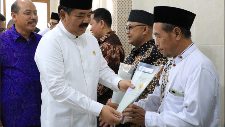 Selanjutnya, Menteri ATR/Kepala BPN meminta agar masjid, musala, dan seluruh tanah yang sudah diwakafkan tetapi belum disertipikatkan agar segera didaftarkan dan dilaporkan kepada Kantor Pertanahan setempat. “Saya berharap sertipikat yang sudah diserahkan dijaga dengan baik, jangan diserahkan kepada pihak-pihak yang tidak berhak. Tanah diberikan tanda batas, dipagari, atau diberikan plang, sehingga seluruh umat beragama dapat beribadah secara tenang dan aman,” tuturnya.