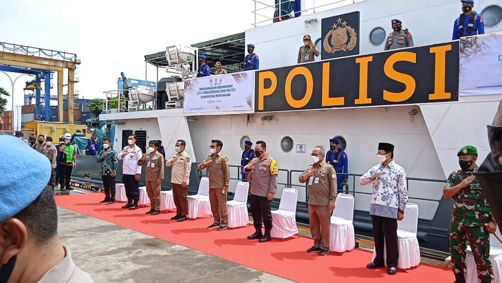 Jakarta, PUBLIKASI – Acara Gebyar Ekspor yang bertempat di Dermaga Pelabuhan Makassar dimulai, tampak memberi kata sambutan mulai dari Gubernur Sulawesi Selatan Andi Sudirman Sulaiman, Menteri Pertanian DR H. Syahrul Yasin Limpo SH MH, Kapolri Jenderal Drs Listyo Sigit Prabowo Msi.