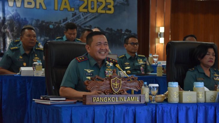 Panglima Kolinlamil memaparkan tentang Pembangunan Zona Integritas (ZI) di satuan kerja jajaran Kolinlamil yang terdiri dari capaian hasil pembangunan Zona Integritas pada 6 Area Perubahan yang telah dilakukan, terutama pada penguatan integritas dan inovasi sistem pelayanan (before and after). Menindaklanjuti arahan dan penekanan Kepala Staf Angkatan Laut Laksamana TNI Muhammad Ali, Panglima Kolinlamil menyampaikan komitmen jajaran Kolinlamil dalam mendukung penguatan reformasi birokrasi di jajaran TNI AL guna menumbuhkembangkan pola pikir dan budaya kerja untuk menuju peningkatan kinerja dan integritas seluruh personel TNI AL. “Oleh karena itu dalam peningkatan kinerja seluruh personel TNI AL bahwa kunci utama dari pembangunan Zona Integritas yaitu perubahan sistematis dan konsisten terkait mekanisme kerja, pola pikir, serta budaya kerja yang harus menjadi lebih baik sesuai tujuan dan sasaran pembangunan Zona Integritas.” ungkapnya.