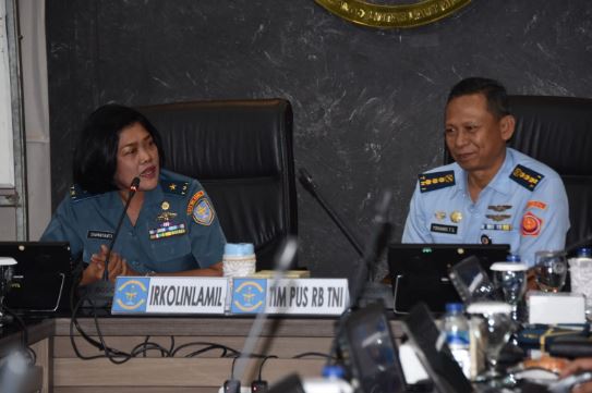 Jakarta, PUBLIKASI-Komando Lintas Laut Militer menerima kunjungan dari Tim Pusat Reformasi Birokrasi TNI yang dipimpin oleh Kolonel Adm Yohanis selaku Ketua Tim yang berlangsung di Ruang Rapat Panglima Kolinlamil, Mako Kolinlamil, Tanjung Priok, Jakarta Utara, Selasa (27/6). Kedatangan Tim Pus RB TNI tersebut diterima oleh Inspektur Kolinlamil Laksma TNI Damayanti dalam hal ini mewakili Panglima Kolinlamil Laksda TNI Edwin, S.H., M.Han, M.H.