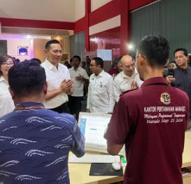 Sulut, PUBLIKASI – Usai menyerahkan sertipikat tanah secara door to door kepada masyarakat di Kota Manado, Menteri Agraria dan Tata Ruang/Kepala Badan Pertanahan Nasional (ATR/BPN), Agus Harimurti Yudhoyono (AHY) meninjau Kantor Wilayah (Kanwil) BPN Provinsi Sulawesi Utara dan Kantor Pertanahan Kota Manado pada Kamis (22/02/2024).