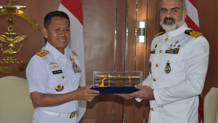 Jakarta, PUBLIKASI — Panglima Komando Lintas Laut Militer Laksda TNI Agus Hariadi didampingi sejumlah pejabat Kolinlamil menerima kunjungan kehormatan delegasi Angkatan Laut Republik Iran yang dipimpin oleh Mission Commander Captain Farhad Fattahi di Gedung Laut Nusantara, Mako Kolinlamil, Tanjung Priok, Jakarta Utara, Senin (7/11).