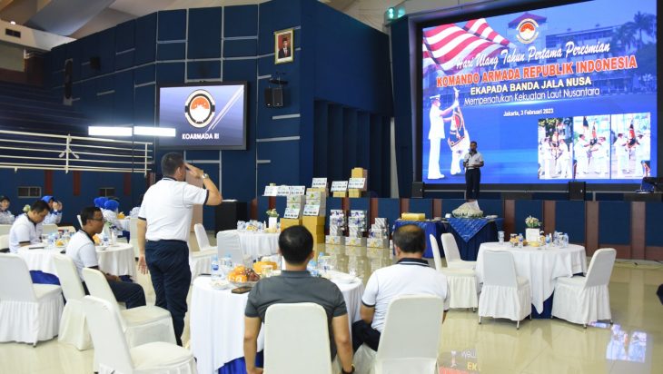 Jakarta, PUBLIKASI – Di Hari Ulang Tahunnya yang pertama, Komando Armada RI menggelar acara tasyakuran yang dipimpin oleh Panglima Koarmada RI Laksdya TNI Heru Kusmanto di gedung O.B. Syaaf Koarmada RI, Gunung Sahari, Jakarta Pusat, Jumat (3/2). Koarmada RI yang diresmikan dan dikukuhkan pada tanggal 3 Februari 2022 tersebut memiliki semboyan “Ekapada Banda Jala Nusa” yang berarti Mempersatukan Kekuatan Laut Nusantara.